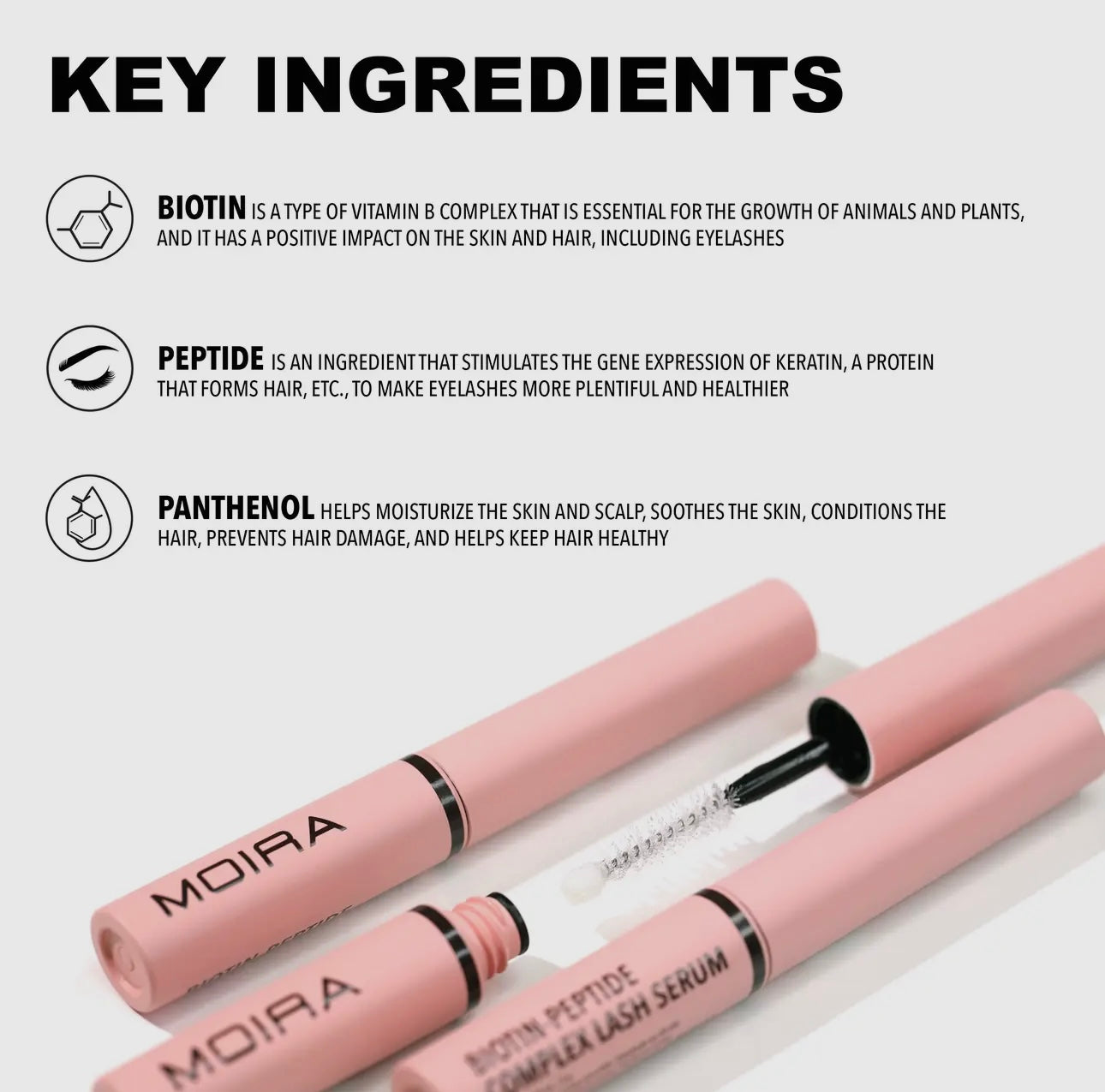 Experience fuller and longer lashes with MOIRA's Biotin-Peptide Lash Serum. Its safe and clear formula, enriched with biotin-peptides, promotes healthy lash growth while being gentle on sensitive eyes. Can also be used on brows for a 2 in 1 solution. Get the best of both worlds with this 100% vegan serum and its convenient brush applicator!