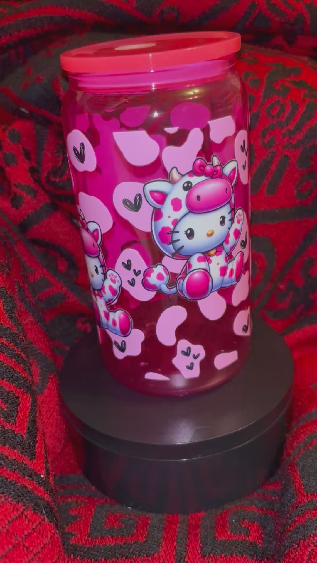 Elevate your morning routine with this Hello Kitty Cup! Enjoy your favorite drink in style with its cute cow print and durable glass material. The 16 oz size is perfect for on-the-go sipping, and the included plastic lid and stainless steel straw make it easy to use. Plus, a cleaning brush is included for hassle-free maintenance. Get yours today!