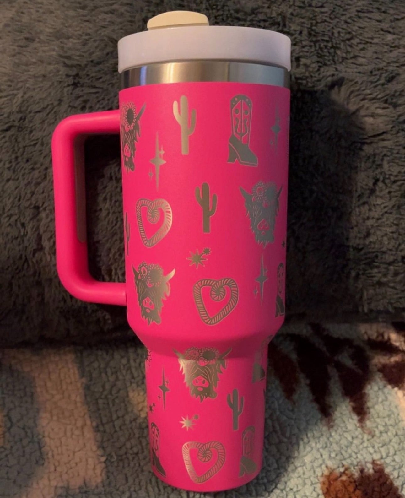 Discover the perfect drinking companion: the Highland Cow Tumbler! Its 40 oz stainless steel construction and eye-catching Highland cow design make it both sturdy and stylish. Its beautiful colors and included straw ensure that every sip is enjoyable. Upgrade your drinking experience - get the Highland Cow Tumbler!